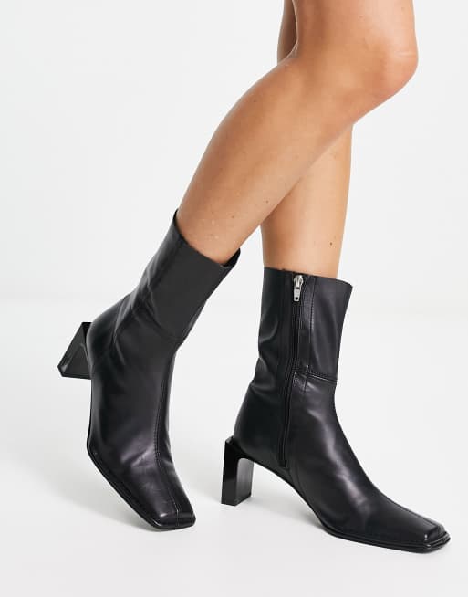 ASOS DESIGN Roman premium leather heeled sock boots in black