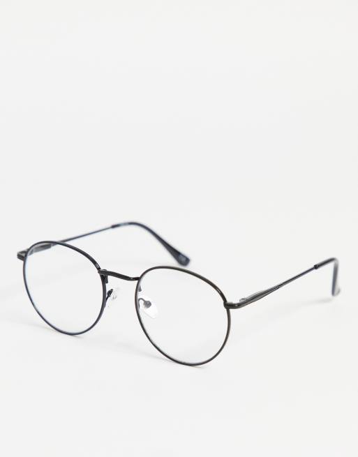 ASOS DESIGN round fashion glasses in black with clear lens