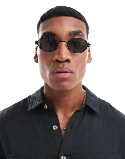 ASOS DESIGN round sunglasses in black with tortoiseshell tips