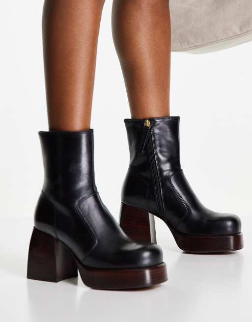 ASOS DESIGN Rowan premium leather platform heeled boots in black
