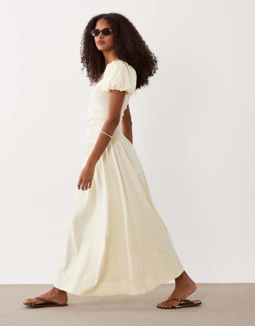 ASOS DESIGN ruched front midi tea dress in buttermilk