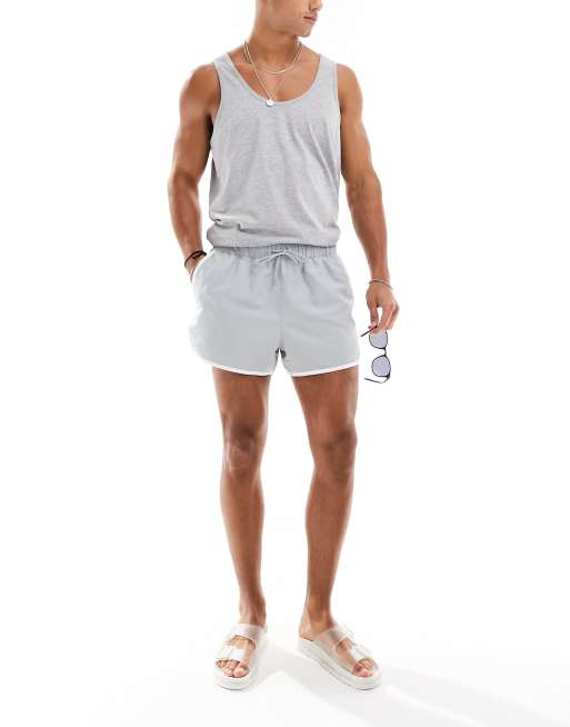 ASOS DESIGN runner swim shorts in short length in grey