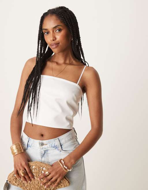 ASOS DESIGN sash detail satin cropped cami top in ivory