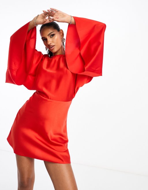 ASOS DESIGN satin batwing sleeve mini dress in red