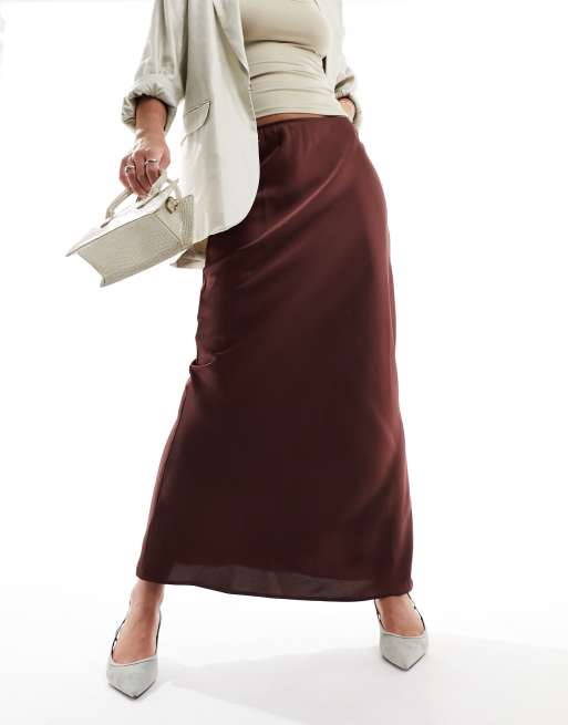 ASOS DESIGN satin bias maxi skirt in chocolate