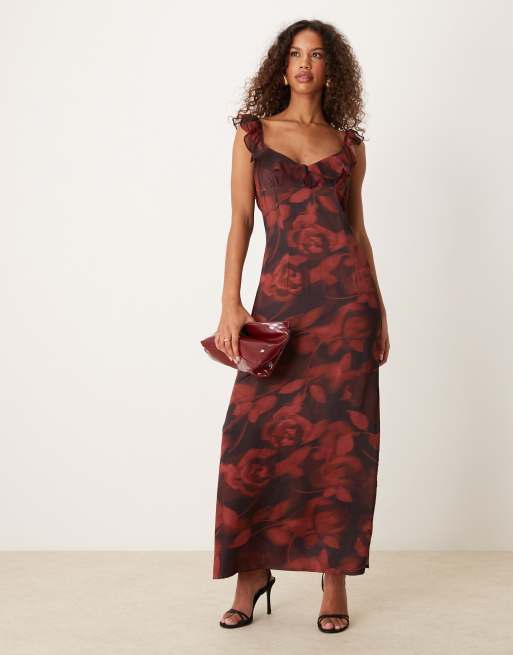 ASOS DESIGN satin chiffon maxi maxi dress in floral