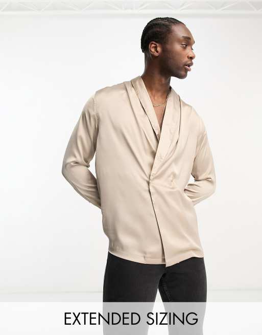 ASOS DESIGN satin double breasted shirt with shawl neck in pink