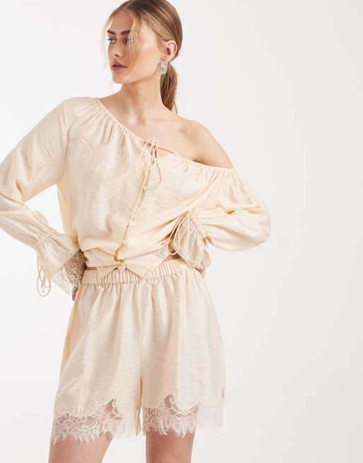 ASOS DESIGN satin lace trim co-ord short in champagne