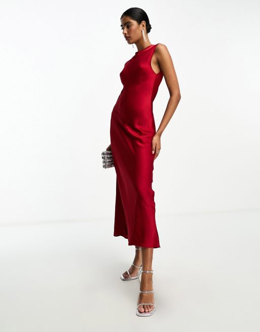 ASOS DESIGN satin midi dress in red