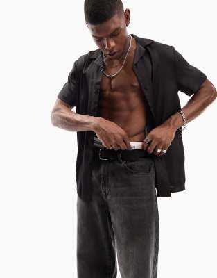 ASOS DESIGN satin shirt with revere collar in black