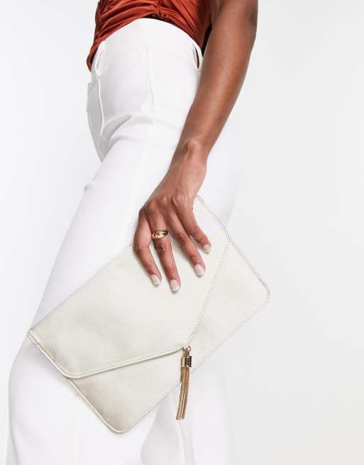 ASOS DESIGN satin tassel clutch bag in ivory