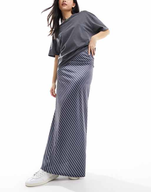ASOS DESIGN satin twill maxi skirt in stripe