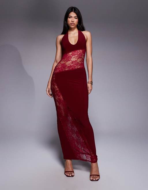 ASOS DESIGN scoop front lace insert maxi dress in dark cherry