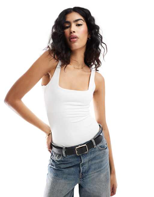 ASOS DESIGN scoop neck double layer cotton bodysuit in white