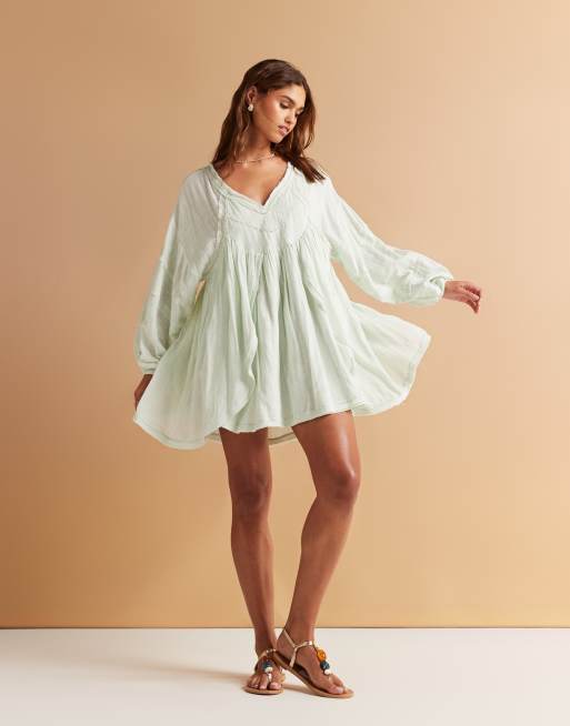 ASOS DESIGN scoop neck laundered smock mini dress in mint