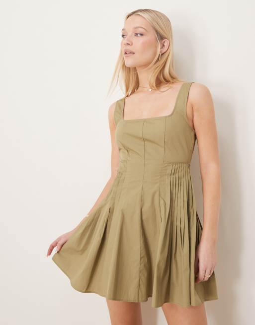 ASOS DESIGN scoop neck pleat waist mini dress in deep putty