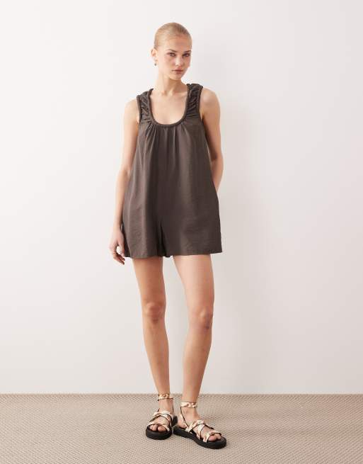 ASOS DESIGN scoop neck smock playsuit in charcoal