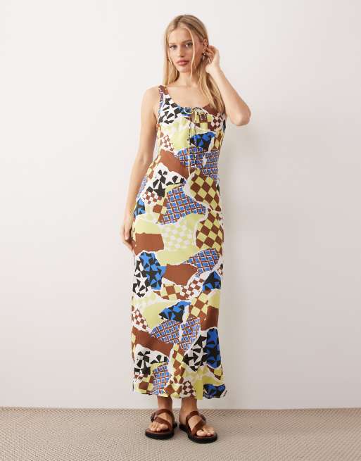 ASOS DESIGN scoop neck tie front midi dress in floral check print