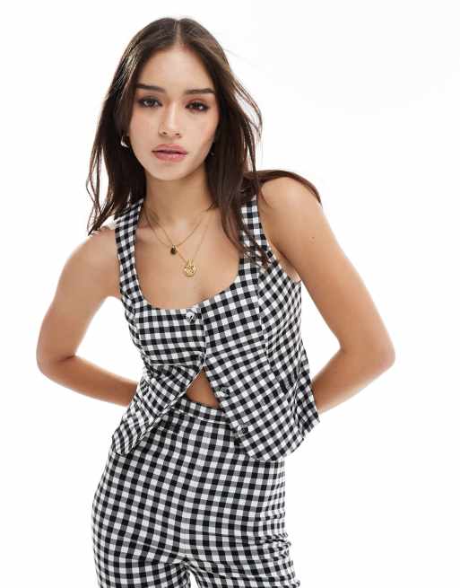 ASOS DESIGN scoop neck waistcoat in gingham print