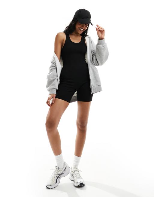 ASOS DESIGN scoop ribbed unitard playsuit in black
