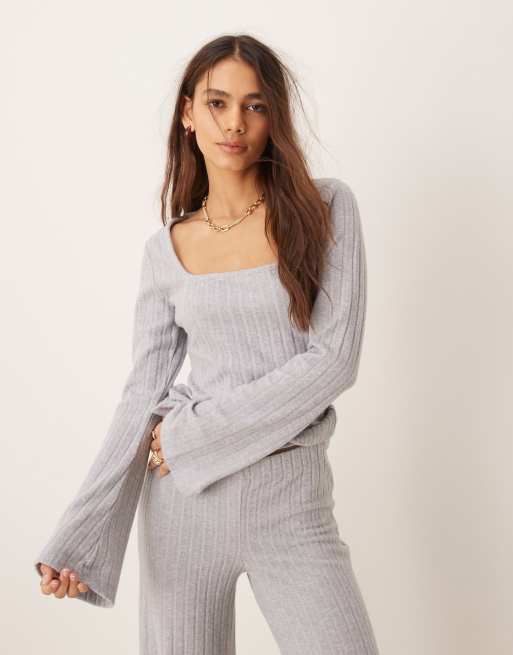 ASOS DESIGN scoop square neck supersoft wide rib top co ord in grey