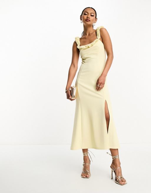 ASOS DESIGN scrunch neck soft textured a-line midi dress in pastel lemon
