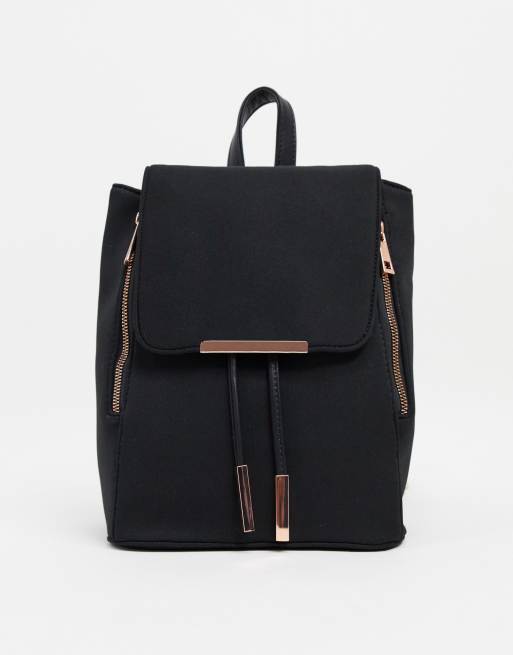 ASOS DESIGN scuba-style fabric backpack with rose gold hardware
