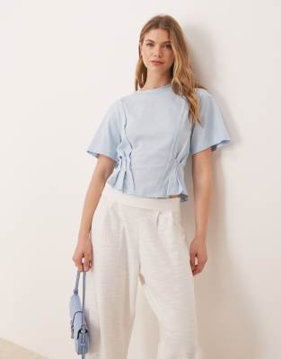 ASOS DESIGN seam detail short sleeve corset waist t-shirt in baby blue