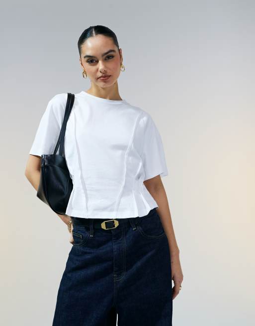 ASOS DESIGN seam detail short sleeve corset waist t-shirt in white