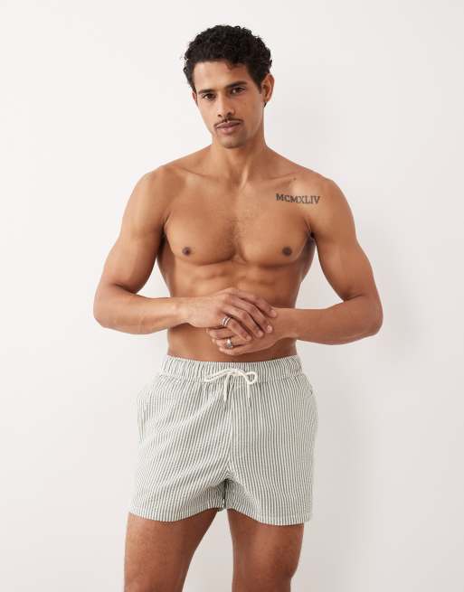 ASOS DESIGN seersucker swim shorts in short length in green stripe