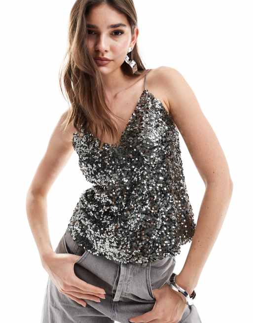 ASOS DESIGN sequin cami top in gunmetal grey