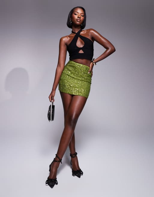 ASOS DESIGN sequin mini skirt in olive