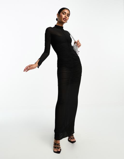 ASOS DESIGN sheer high neck maxi dress with ruched bodice and bodysuit in black