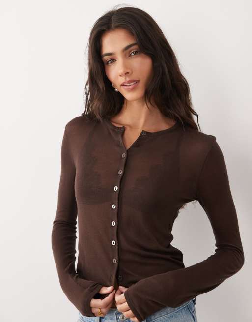 ASOS DESIGN sheer second skin cardigan in chocolate - BROWN
