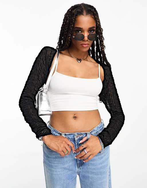ASOS DESIGN sheer textured mesh shrug cardigan in black