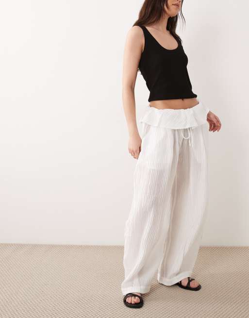 ASOS DESIGN sheer textured pull on balloon trousers with waist detail in white