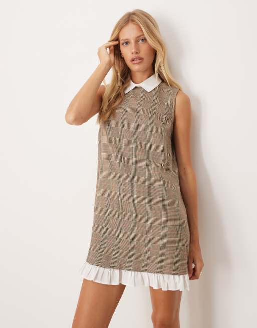 ASOS DESIGN shift mini dress in multi check with contrast shirt collar and hem