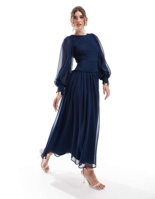 ASOS DESIGN shirred bodice midi dress in teal blue
