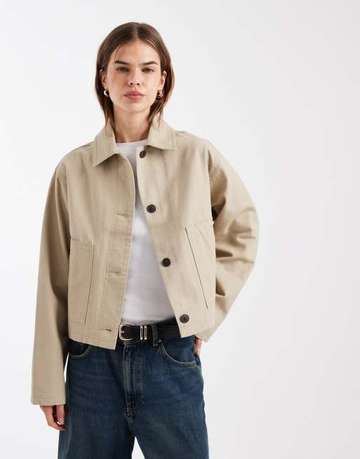 ASOS DESIGN short cotton harrington jacket in stone