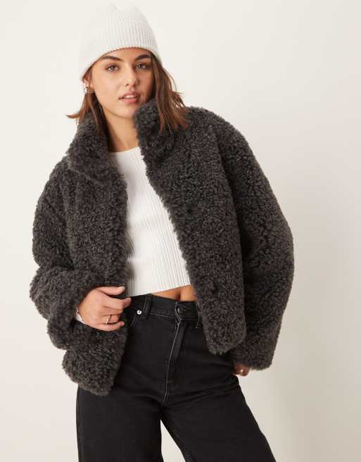 ASOS DESIGN short curly borg faux fur jacket in charcoal