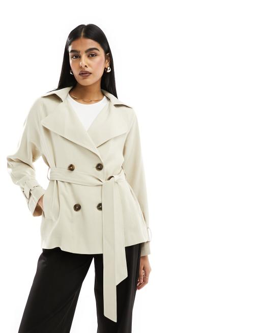 ASOS DESIGN short lightweight trench with tie waist in stone