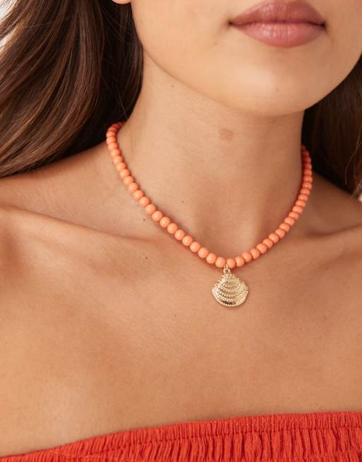 ASOS DESIGN short necklace with coloured stones and shell pendant