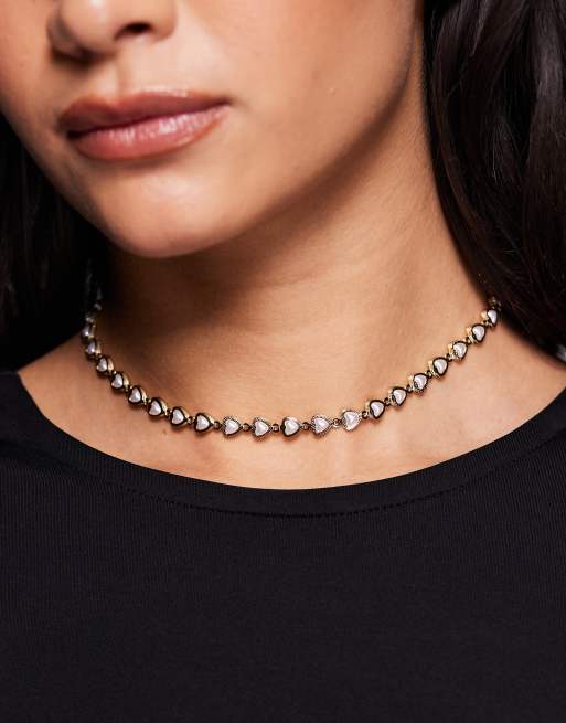 ASOS DESIGN short necklace with mini hearts with faux pearls in gold tone