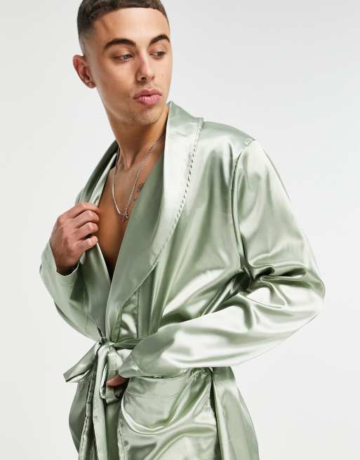 ASOS DESIGN short satin dressing gown in pastel green