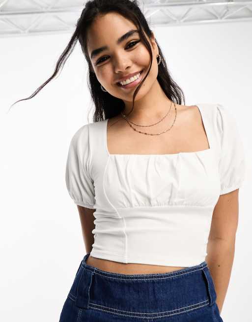 ASOS DESIGN short sleeve bust seam milkmaid top in white