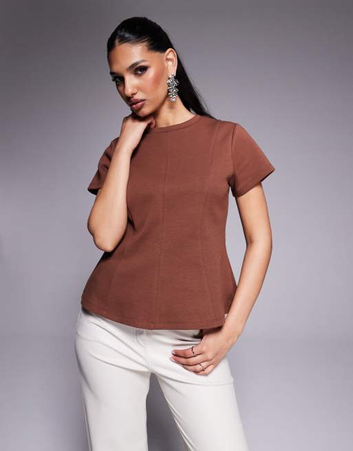 ASOS DESIGN short sleeve interlock t shirt with seaming detail in brown