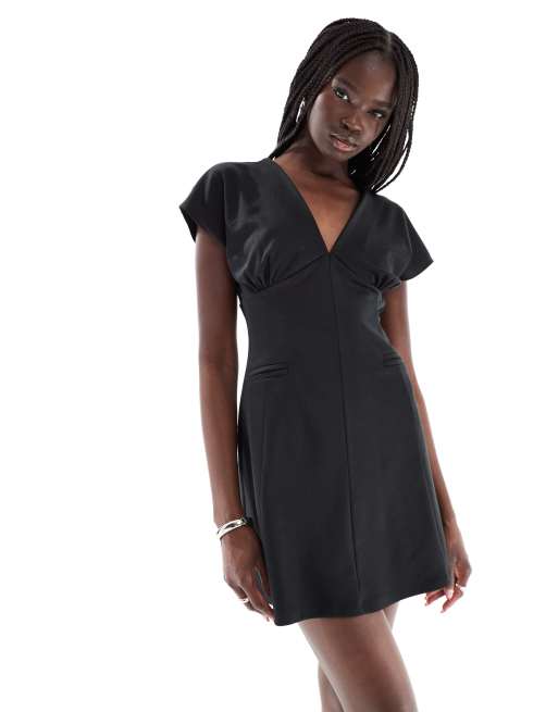 ASOS DESIGN short sleeve plunge seam detail mini dress in black