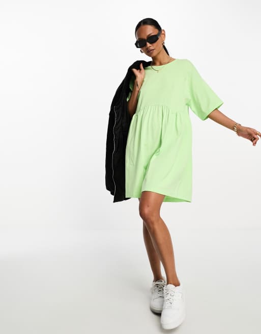 ASOS DESIGN short sleeve seam detail mini smock dress in lime