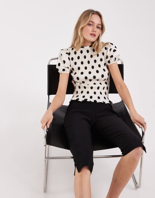 ASOS DESIGN short sleeve shirred top in cream polka dot