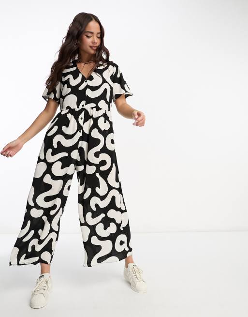 ASOS DESIGN short sleeve tea jumpsuit in mono abstract print